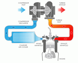 به بیان ساده تر این سیستم با کمک گرفتن از گازهای خروجی اگزوز خودرو، به مکش هوای تازه برای استفاده در محفظه احتراق کمک می کند. هوای بیشتر یعنی رسیدن اکسیژن بیشتر به محفظه احتراق خودرو و همین موضوع باعث احتراق بهتر و افزایش قدرت و راندمان موتور ماشین می شود.