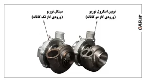 در کل دونوع سیستم توربوشارژ موتور ماشین به نام های توربو سینگل اسکرول و توربو تویین اسکرول وجود دارد.