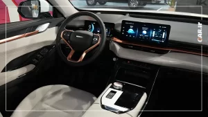 طراحی بدنه با جلوپنجره بزرگ و چراغهای کشیده، ظاهری مدرن و تهاجمی به خودرو بخشیده است. در نمای عقب نیز چراغهای بههمپیوسته و طراحی ساده اما هماهنگ، چهرهای آشنا اما جذاب برای بازار ایران خلق کردهاند. کابین خودرو هم با نمایشگرهای دیجیتال، دسته دنده الکترونیکی و فرمان سهشاخه، حس مدرن و نسبتا لوکسی را به راننده و سرنشین منتقل میکند.